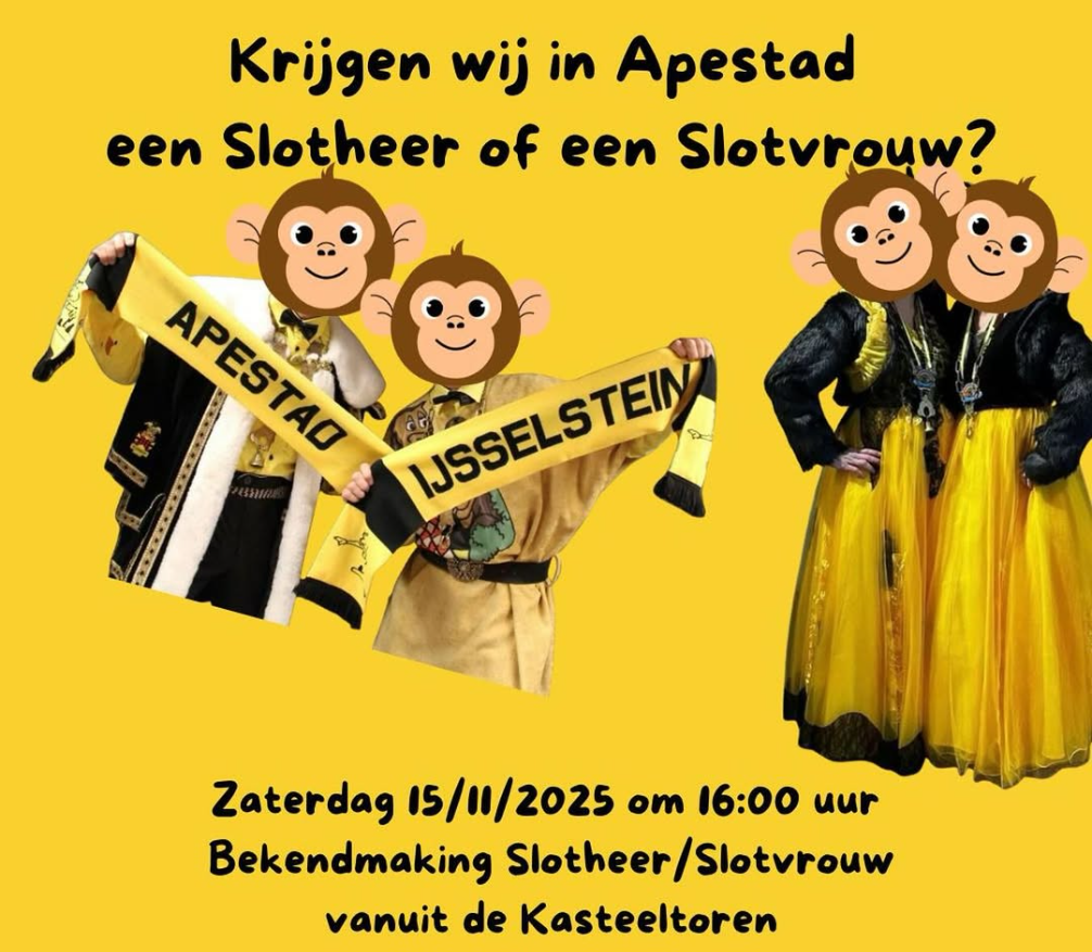 Ieder jaar weer is het een goed bewaard geheim: wie wordt de Slotheer/Slotvrouw? Zeker dit jaar hopen we op een geweldig feest waar we de Slotheer/Slotvrouw aan je voor kunnen stellen. Natuurlijk brengen zij hun eigen Knecht of Hofdame mee. Misschien is het wel iemand uit je omgeving, kom je hem (of haar?) iedere week wel een keer tegen op het schoolplein, in het Stadje of op de sportclub….